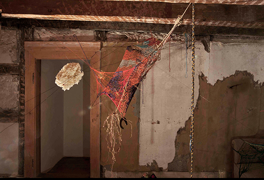 an installation of drawings and objects made with the artists menstrual blood